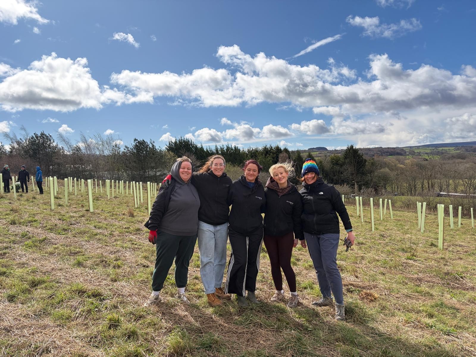 They assisted The North East Community Forest (NECF) with tree planting in Consett and planted 200 trees while learning all about the importance of the initiative. The planting included larger trees as part of orchard and a copse of mixed species. The team dug holes, planted trees, firmed them up and added stakes.